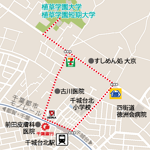 →千城台北駅発 千葉・千葉みなと方面 時刻表 - 千城台北駅より大学まで徒歩約10分