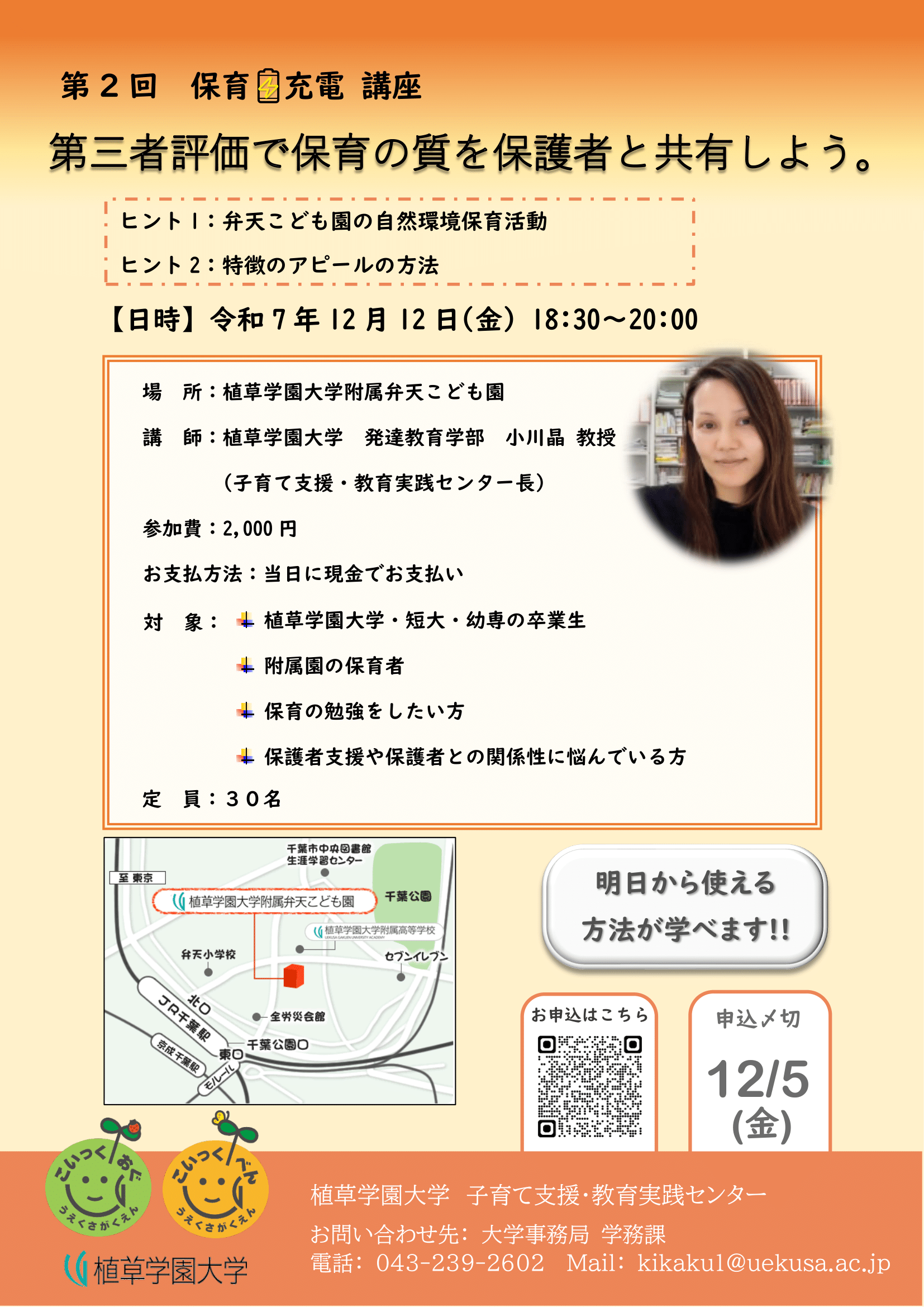 卒業生の方、改めて保育について学びたい保育者の方、ぜひ充電しにきてください。