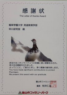 早川ゼミでは、ウサギ・シカに続いて、ライチョウの糞のストラップを作り、保護施設のある富山市ファミリーパークに送りました。
