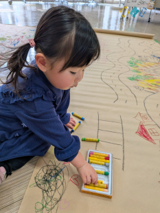 ・大きなクラフト紙に描いて遊ぶコーナー