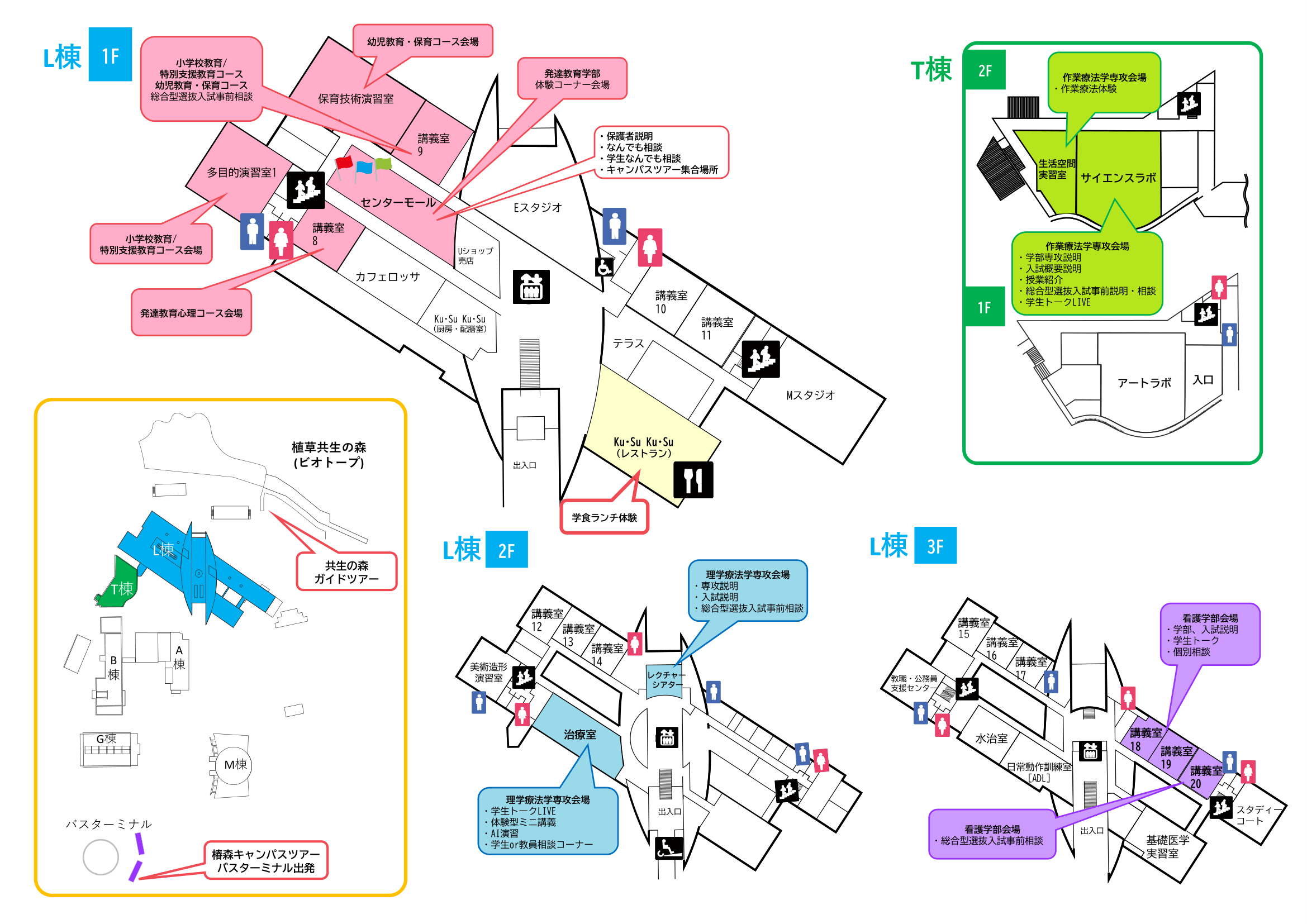 教員による個別相談、キャンパス見学に加え、授業紹介や体験などの企画を盛り込み、多彩なプログラムをご用意してお待ちしています。
