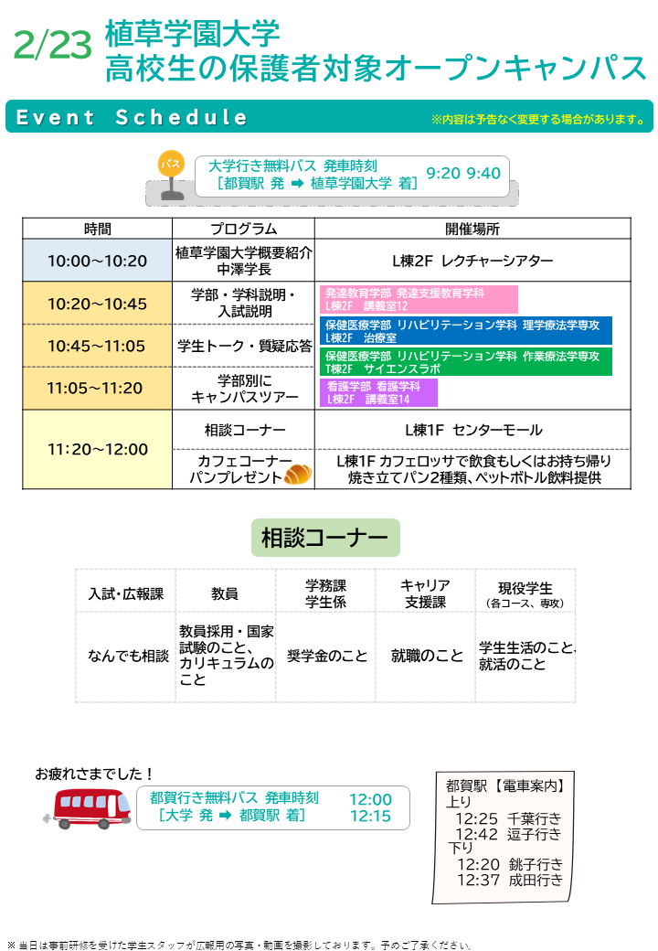 高校生の保護者対象 オープンキャンパスタイムスケジュールのお知らせ