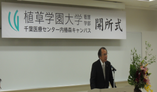 本式典は植草学園理事長植草和典、同大学学長中澤潤はじめ、千葉県医師会長入江康文様、国立病院機構千葉医療センター院長古川勝規様、千葉医療センター附属千葉看護学校同窓会副会長内山紀子様、国立病院機構下総医療センター院長女屋光基様、国立病院機構下志津病院院長 鬼頭浩之様ご列席のもと、開催されました。また、式典の運営には新入生(一期生)がスタッフとして関わり、新キャンパスの船出を祝いました。